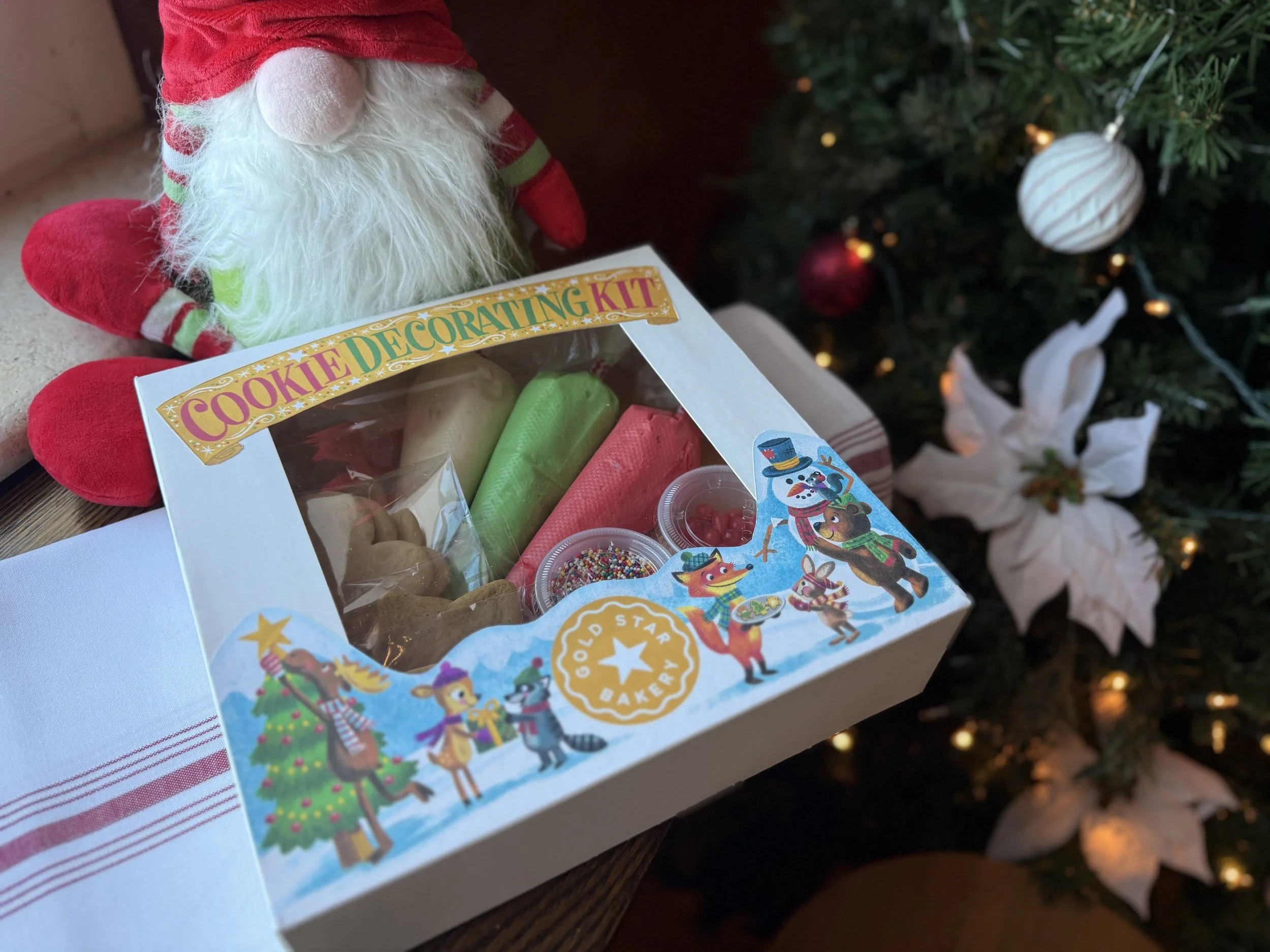 • 12 freshly baked Gold Star Bakery cookies (6 gingersnaps and 6 sugar cookies) in fun holiday shapes.